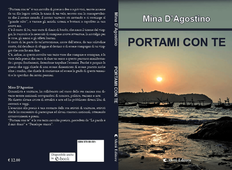 Portami con te è un libro complesso, una raccolta di poesie a due o a più voci, tenute insieme da un filo sottile, quasi la trama di un velo, tessuto con la consapevolezza che il nostro mondo, il nostro universo sta mutando e costringe gli umani al “grande salto”, a varcare gli antichi sistemi e buttarci a capofitto in una nuova era. Quando ho scritto questo libro eravamo nel pieno del covid: sentivo anch’io come molti, l’esigenza di un cambiamento radicale.